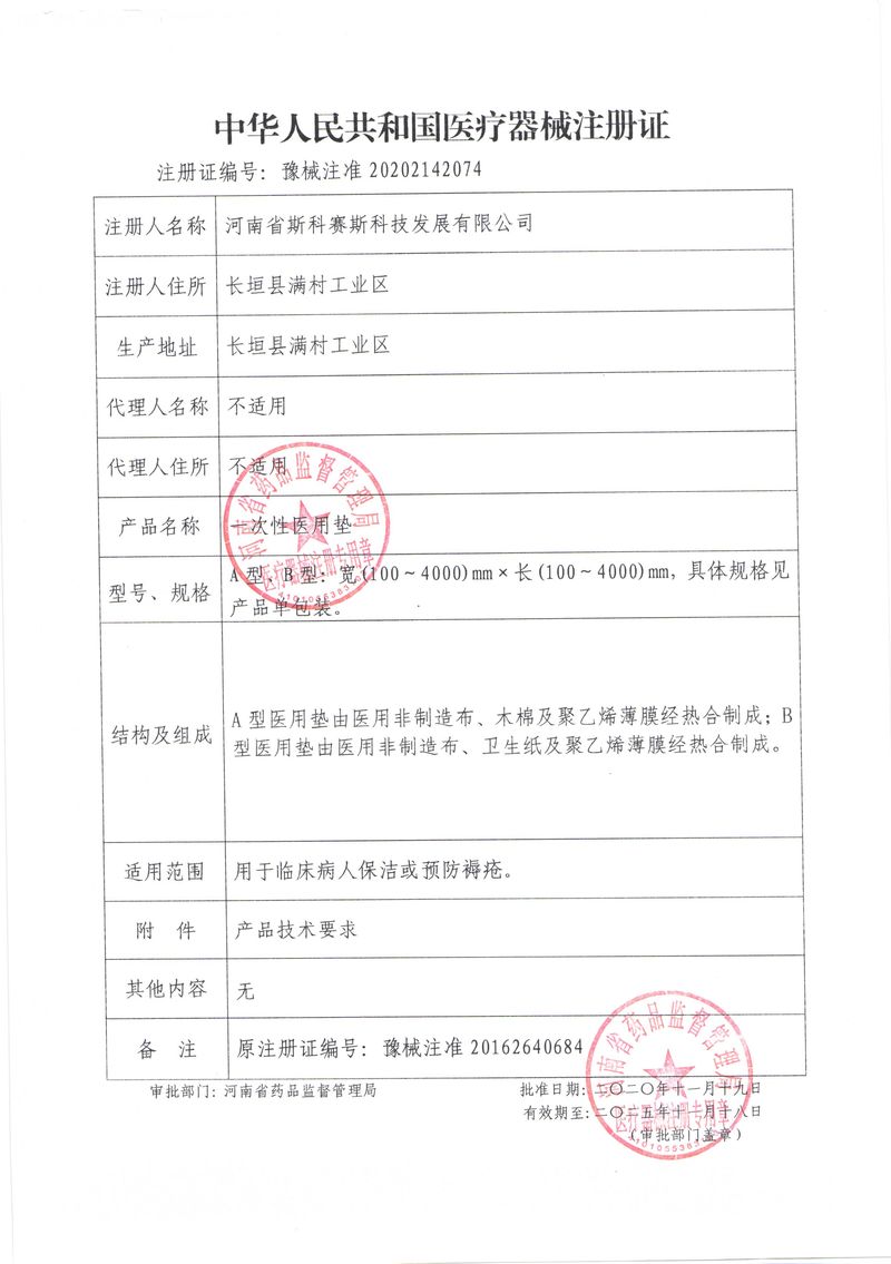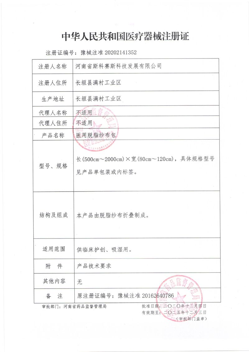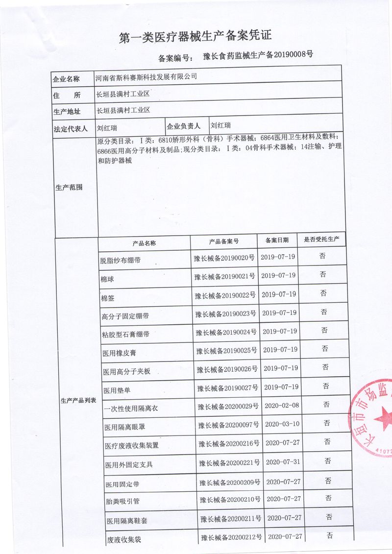 河南省斯科賽斯科技發(fā)展有限公司創(chuàng)建于 2011 年,位于“中國醫(yī)療耗材之都”- 河南省長垣縣,西臨 308 省道,南靠新菏鐵路,北依長濟(jì)高速,交通便捷,經(jīng)濟(jì)發(fā)達(dá),環(huán)境優(yōu)美。斯科賽斯積極進(jìn)入醫(yī)療健康和服務(wù)領(lǐng)域,秉承為用戶創(chuàng)造價(jià)值的理念,專注于醫(yī)用耗材解決方案的研發(fā)和運(yùn)營,并為用戶提供完善的產(chǎn)品解決方案;  斯科賽斯主要生產(chǎn)醫(yī)用麻醉系列、醫(yī)用高分子系列、醫(yī)用敷料包系列、醫(yī)用無紡布系列、醫(yī)用防護(hù)系列、醫(yī)用脫脂棉系列、生物材料制品類等七大類、100 多個(gè)品種、400 多個(gè)規(guī)格的產(chǎn)品。公司占地面積約 30000 平方米,建筑面積20000 平方米,擁有 10 萬級的凈化車間總面積 10000 平方米。擁有國際先進(jìn)水平的生產(chǎn)設(shè)備和檢測儀器,技術(shù)裝備精良,檢測手段完善,為醫(yī)療行業(yè)的不斷發(fā)展進(jìn)步提供保障。公司順利通過 ISO9001、ISO13485 質(zhì)量管理體系認(rèn)證。  斯科賽斯堅(jiān)持研發(fā)高科技新產(chǎn)品,力爭在醫(yī)療器械關(guān)鍵領(lǐng)域取得技術(shù)和研發(fā)的重大突破;立足國內(nèi)和國際兩個(gè)市場,逐步實(shí)現(xiàn)管理理念、經(jīng)營機(jī)制、人力資源、技術(shù)、產(chǎn)品、市場等全方位對接,提高企業(yè)的核心競爭力;過去的歲月里,斯科賽斯砥礪前行,誠信務(wù)實(shí),銳意進(jìn)取,不斷創(chuàng)新,用自己的睿智和辛勞,以富有責(zé)任感的使命,在探索中追求,在追求中超越,致力于成為值得信賴的醫(yī)療用品生產(chǎn)企業(yè)!在未來的日子里,斯科賽斯將一如既往豪情滿懷,信心百倍,攜手并肩,執(zhí)著追求,向更高的的目標(biāo)前進(jìn),鑄造新的輝煌!